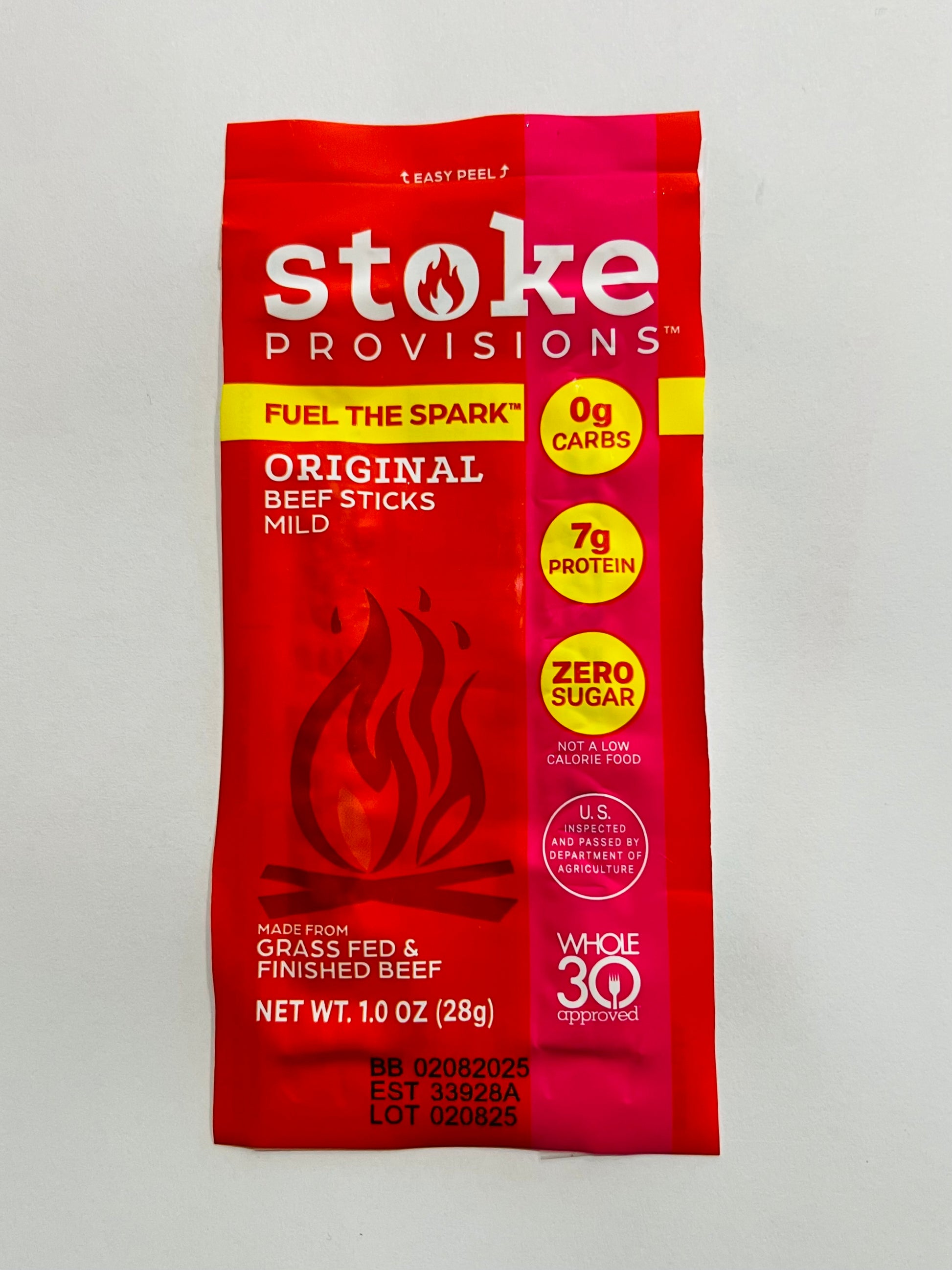 Stoke Provisions Original Flavor 100% grass fed and finished beef sticks are a unique blend of savory and delicious. We use beef sourced from farmers who care about their animals and our planet.